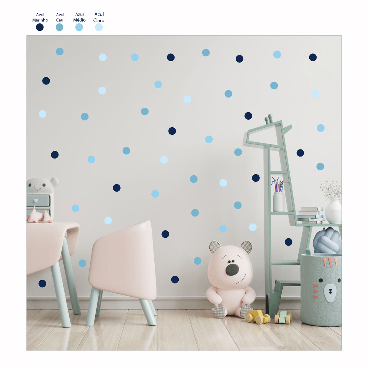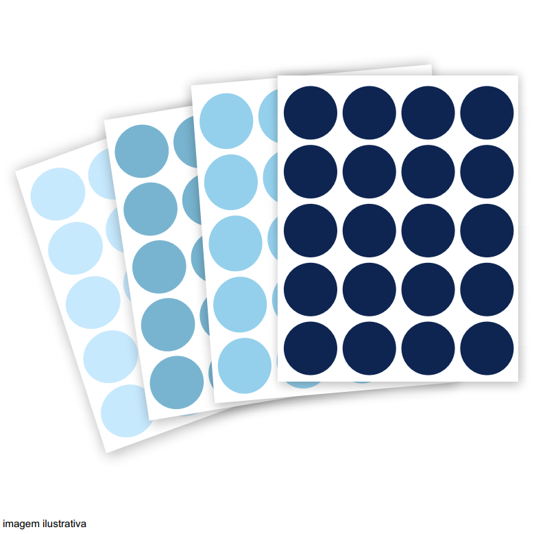 KIT MINI ADESIVO BOLINHAS 4 CORES AZUL MARINHO, AZUL CÉU, AZUL MÉDIO E AZUL CLARO