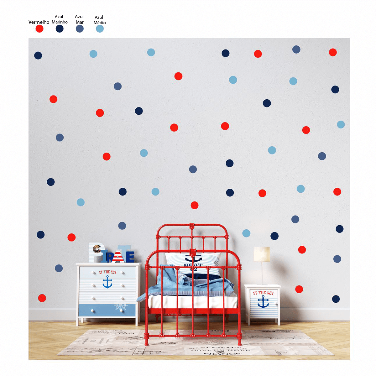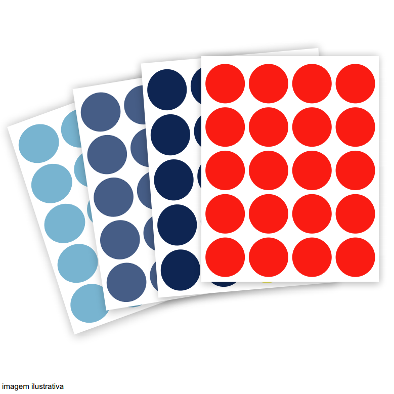 KIT MINI ADESIVO BOLINHAS 4 CORES VERMELHO, AZUL MARINHO, AZUL MAR E AZUL MÉDIO