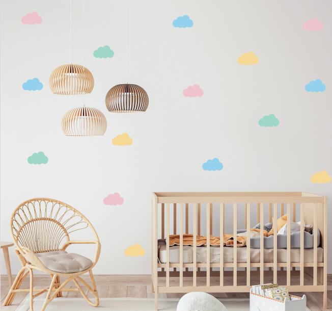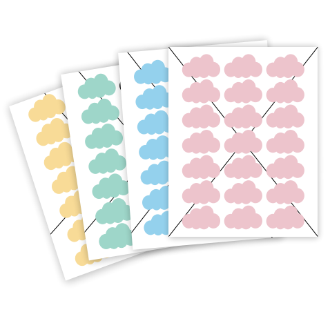 KIT MINI ADESIVO NUVEM 4 CORES ROSA ANTIGO, AZUL CÉU, VERDE ANTIGO E AMARELO ANTIGO