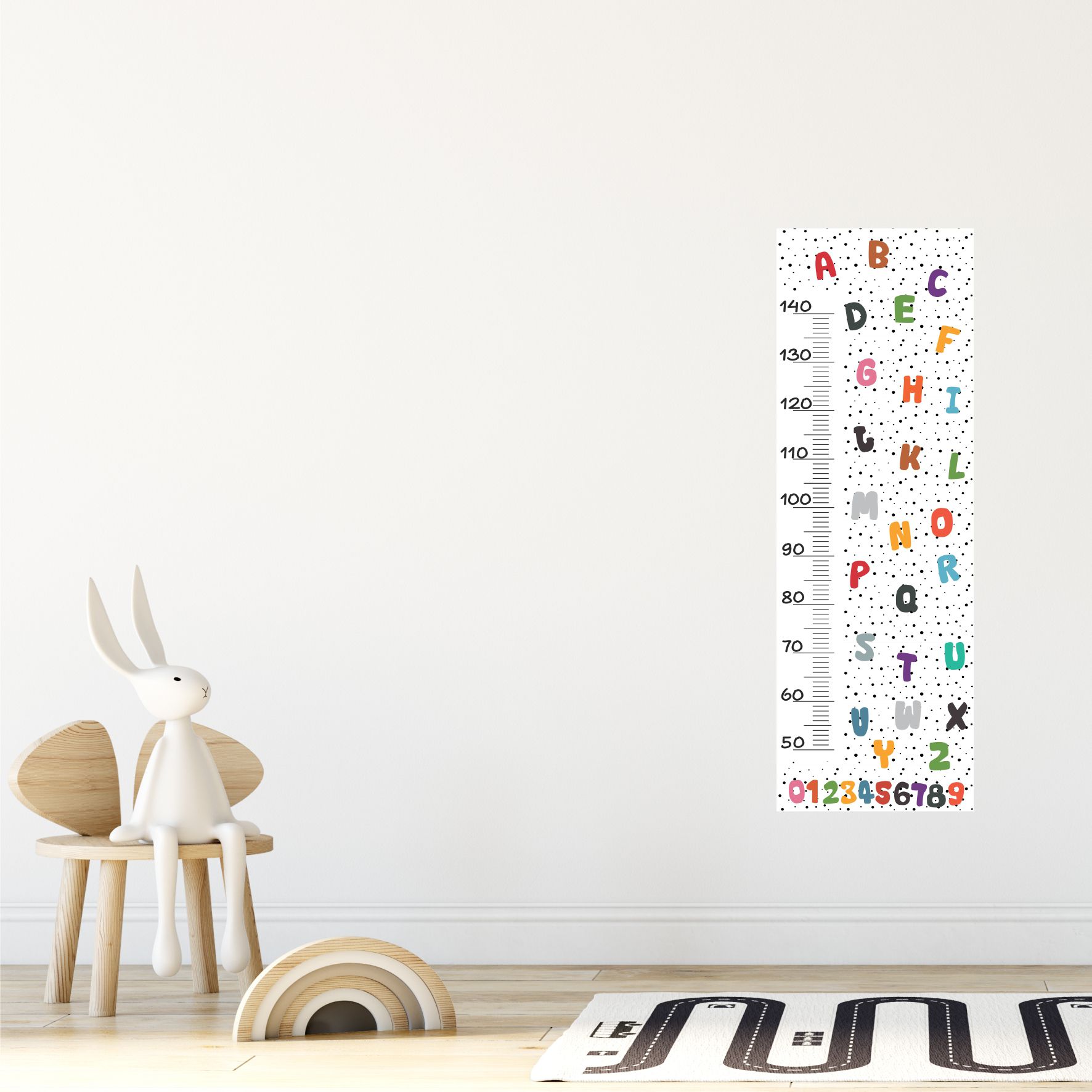 A medida da régua é de aproximadamente 20x115cm, sendo que a marcação se inicia na medida de 30cm e termina na medida de 145cm.